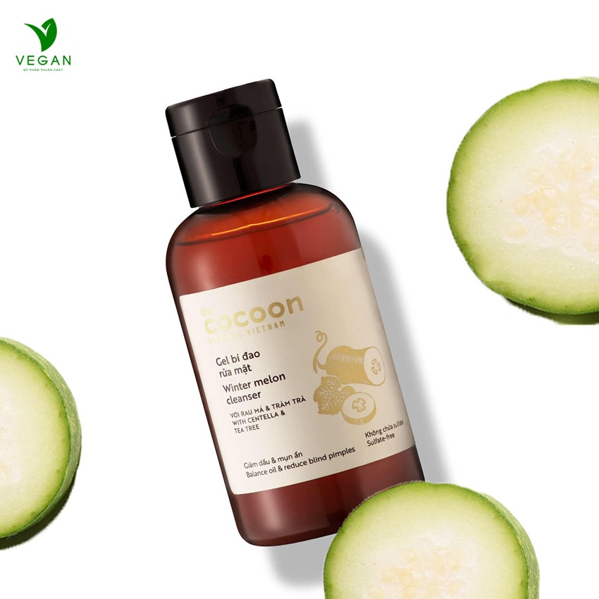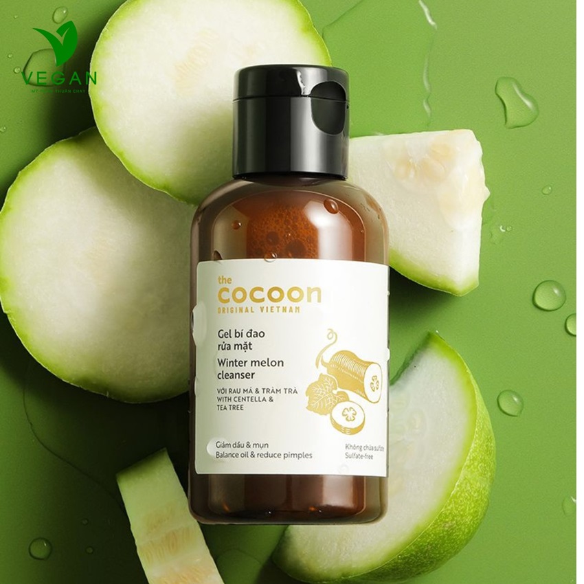 Gel bí đao rửa mặt Cocoon (Winter melon cleanser) 140ml Có thành phần tự nhiên gồm bí đao, rau má, tràm trà, Vegan thuần chay