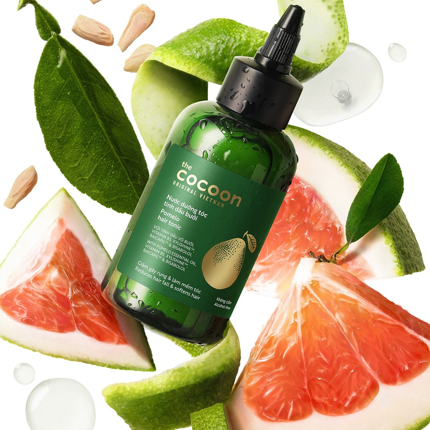 Công dụng Nước dưỡng tóc tinh dầu bưởi Cocoon (pomelo hair tonic):• Giảm gãy rụng tóc và làm mềm tóc.