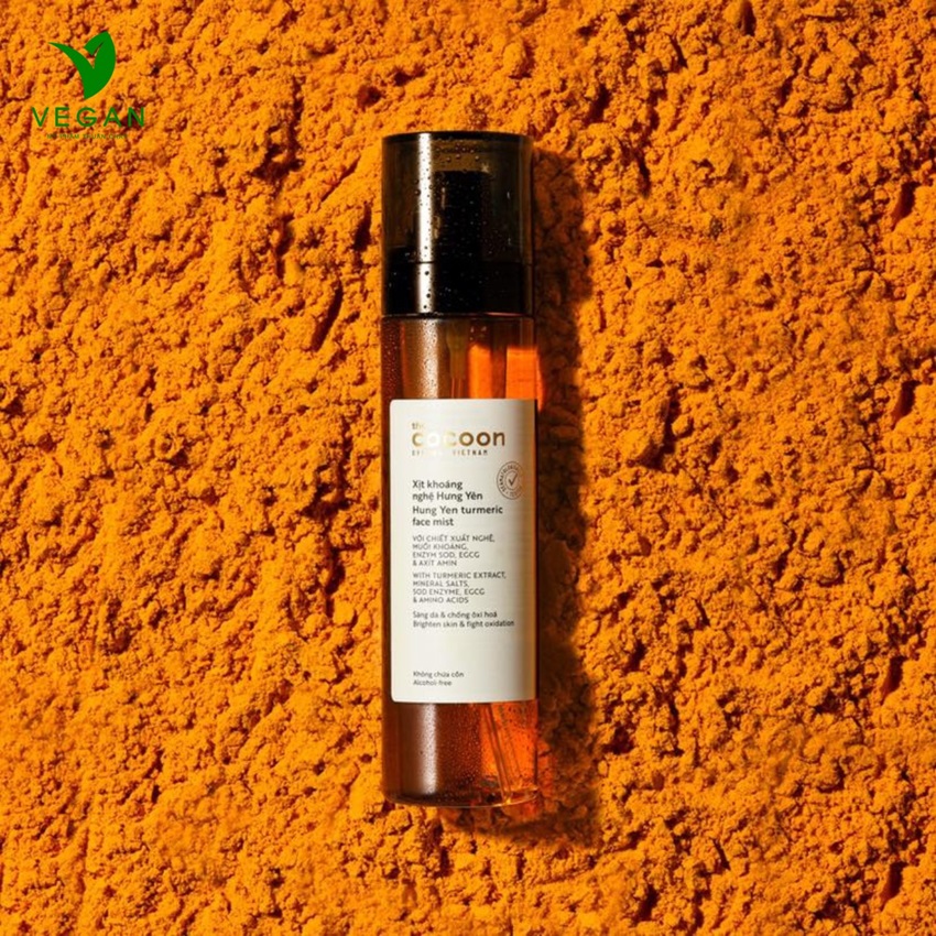 Xịt khoáng Nghệ Hưng Yên COCOON thuần chay Chống oxi hoá mạnh, làm sáng và cấp ẩm cho da ngay lập tức với một làn sương mịn bao phủ.