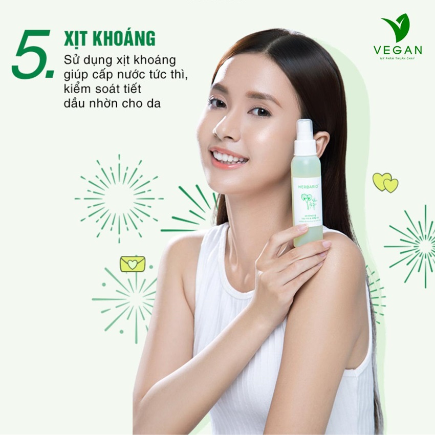 Xịt khoáng rau má & diếp cá herbario 100ml thuần chay 100% cấp ẩm tức thời cho da giúp da không bị khô, làm dịu mềm mại.
