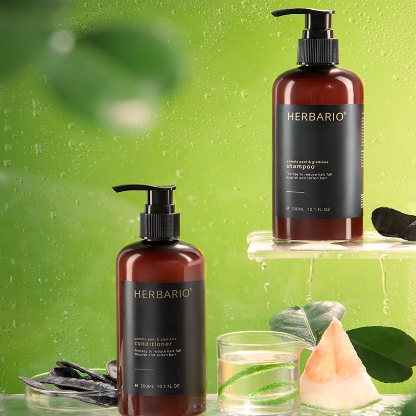 Sức mạnh kết hợp dầu gội và dầu xả HERBARIO chiết xuất vỏ bưởi & bồ kết