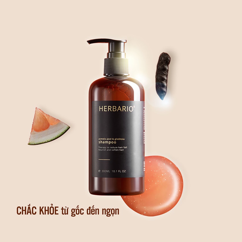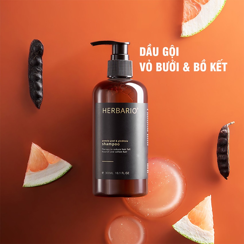 Dầu gội vỏ bưởi & bồ kết Herbario 300ml giúp giảm rụng tóc*, nuôi dưỡng tóc từ sâu bên trong, cung cấp dưỡng chất giúp tóc chắc khỏe, phục hồi tóc hư tổn do tác động của môi trường và hóa chất, giúp tóc luôn khỏe mạnh, suôn mượt và mềm mại.